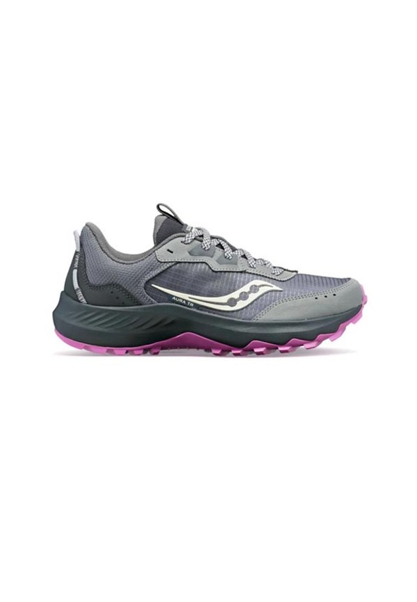 Le Aura TR sono scarpe da trail dall'intersuola leggera, reattiva e comoda. Assorbe le forze d'impatto e offre una sensazione di morbidezza all'appoggio, rendendola ideale per il trail o per qualsiasi tipo di escursione e camminata nella natura. Nel complesso, la scarpa offre un'ottima combinazione di resistenza, trazione e comfort .